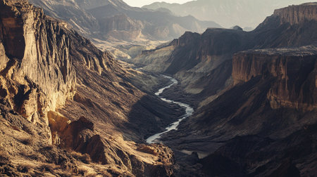 Mountain landscape with a river flowing through the gorge.