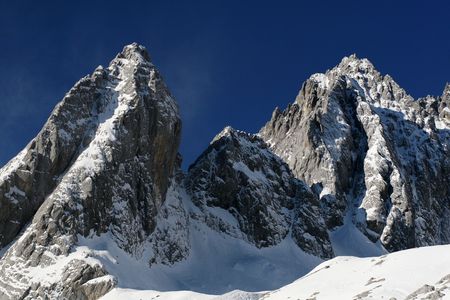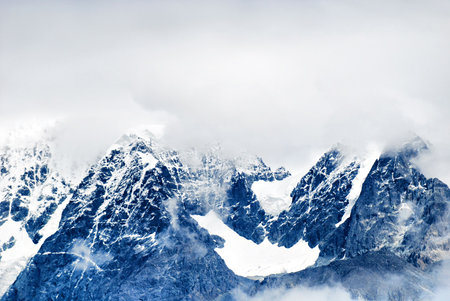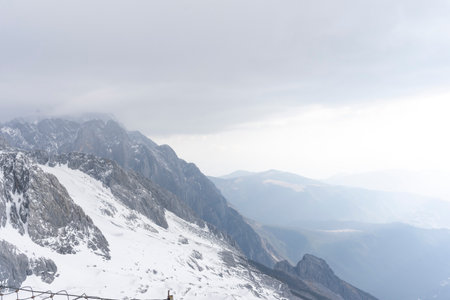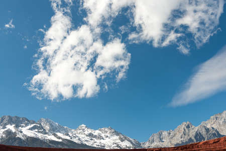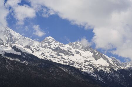 Snow covered mountain peaks at Jade Dragon Snow Mountain. Snow mountain landscape.