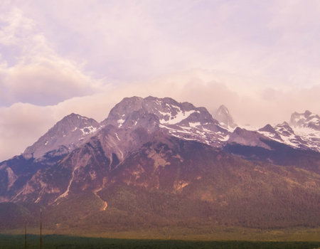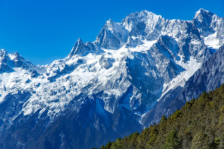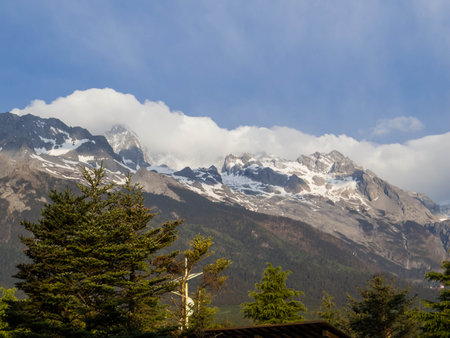 Beautiful view of Jade Dragon Snow Mountain (or Mt. Yulong) in Yulong Naxi Autonomous County, Lijiang, in Yunnan province, China.