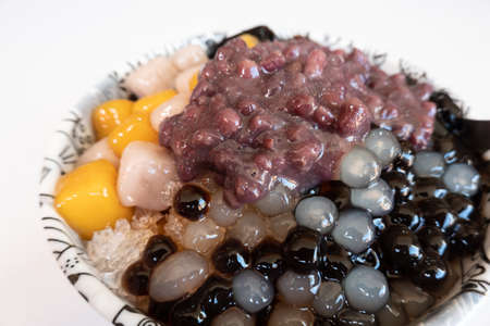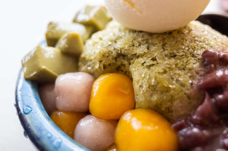 eating shaved ice with colorful dessert, famous Taiwan snacks