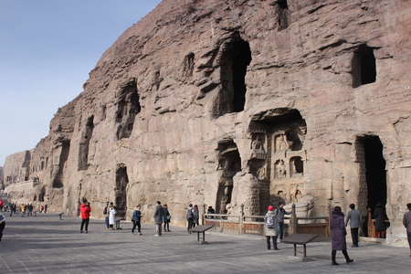 Famous Longmen Grottoes (statues of Buddha and Bodhisattvas carved in the monolith rock near Luoyang in Hennn province, China)