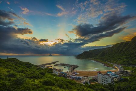Beautiful sunset over the ocean coastline of Taiwan seen from Jiufen village, Taipei.