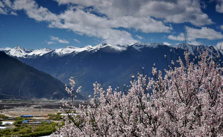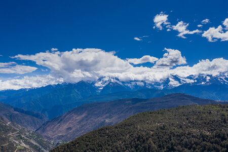 Beautiful landscape with mountains and blue sky in Tibet, China.