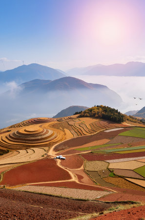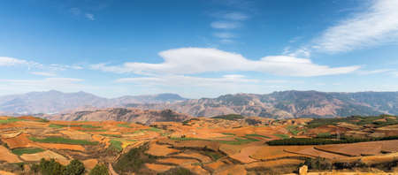 China rural landscape on colorful red land in Yunnan Province, southwest of China
