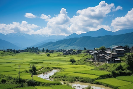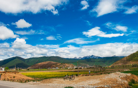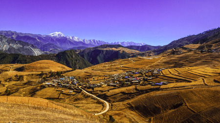 Beautiful nature around a village with Mountain background Shangri-La, China