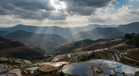 Hani Terraced rice fields of YuanYang, China during the golden hour