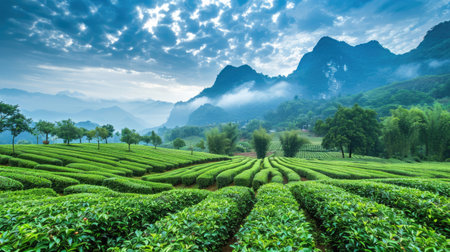 The Lush and Vibrant Green Tea Plantations Thriving in a Stunning Scenic Landscape
