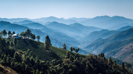 Exploring the Verdant Tea Terraces amidst a picturesque landscape of natures beauty