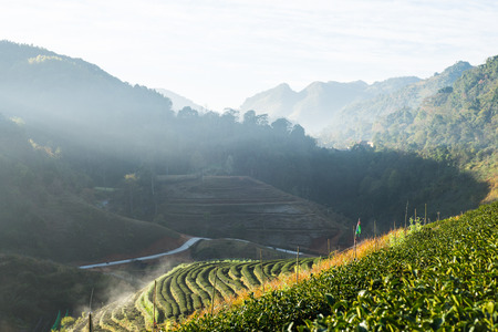tea plantation in the morning at Doi Ang Khang, Chiang Rai, Thailand