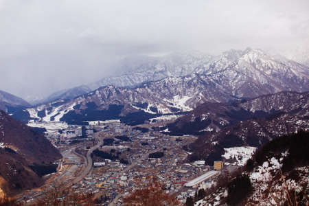 View of the city takayama in Japan in the snow