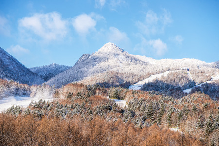 Beautiful mountain slope in winter in Gala Yuzawa, Niigata, Japan.
