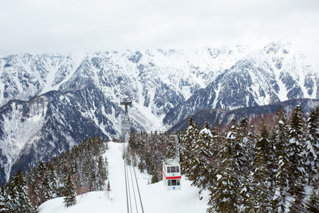 Shin-Hotaka Ropeway climbs up the top of Hotaka mountain in winter season, Okuhida, Gifu, Japan