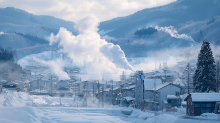 The famous hot spring town of Noboribetsu in Hokkaido, with steam rising from the volcanic Jigokudani Valley.