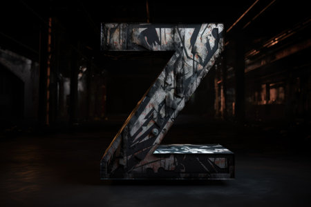 A striking black letter Z rests on a textured dark surface, showcasing its glossy finish and intricate details. The image captures the elegance of the letter, highlighting its unique shape and the subtle imperfections that add character to the design.