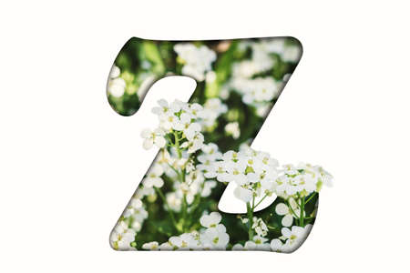 Letter Z of the alphabet made with pink flower of Rhododendron, isolated on a white background