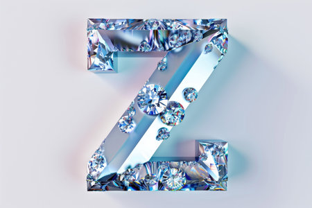 The letter Z is made of diamonds and has a shiny, reflective surface. The diamonds are scattered throughout the letter, creating a sparkling effect. Scene is elegant and luxurious with Generative AI
