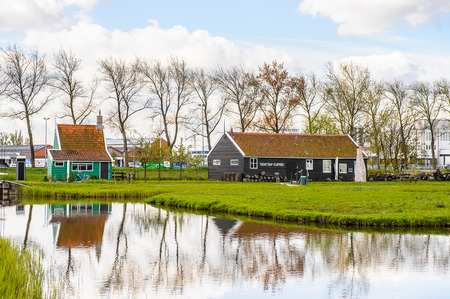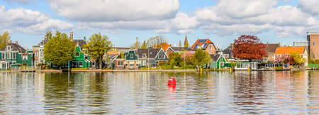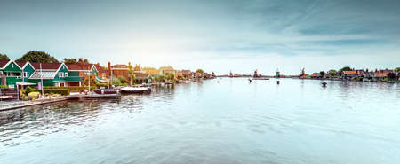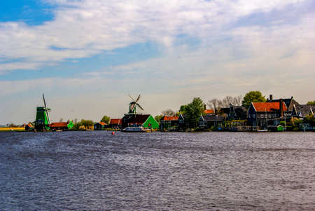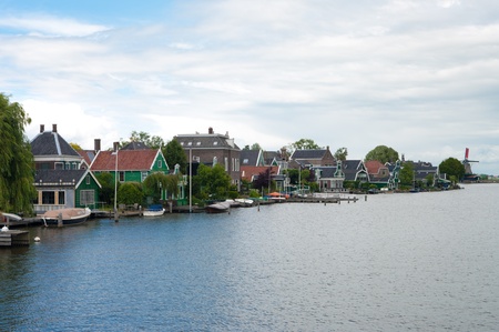 Zaanse Schans. Picturesque view of a Dutch village located at the river.