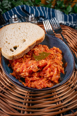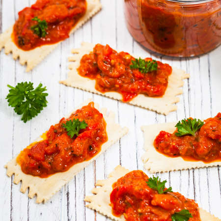 Dish of minced peppers, tomatoes and spices, cooked to a pulp - bulgarian traditional lutenitsa
