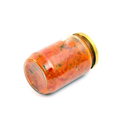 picture of a Traditional Macedonian food. Luteniitza in jar . homemade product