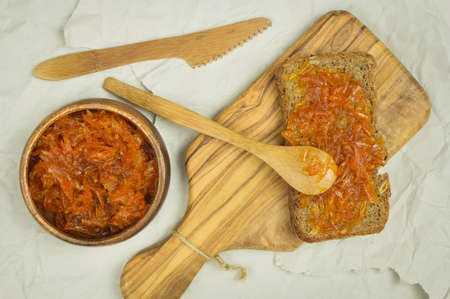 carrot jam on slice of bread