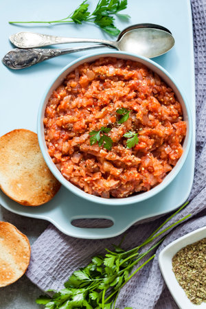 Zaalouk Moroccan eggplant dip in the bowl