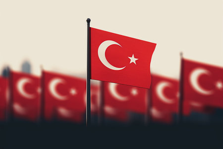 Turkish flag waving against a bright blue sky, symbolizing national pride and identity during a sunny afternoon