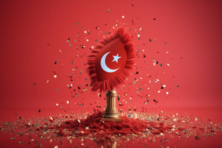 A large Turkish flag, with its vivid red background and white star, is proudly showcased during a celebration symbolizing national pride, unity, and the cultural heritage of the Turkish people