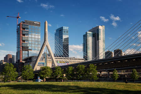 Leonard P. Zakim Bunker Hill Memorial Bridge in downtown Boston, Massachusetts, view from North Point Park.