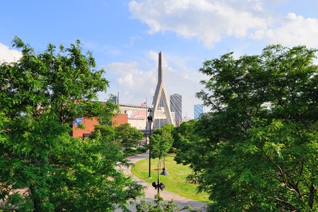 Zakim bridge from Paul Revere park in Boston, Massachusetts - USA