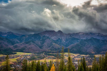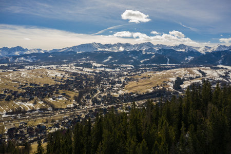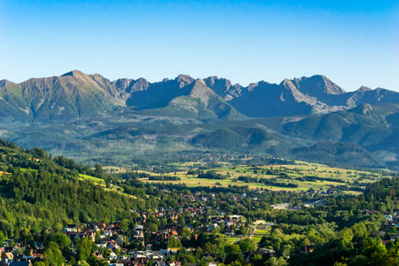 Beautiful panoramic view of Polish mountains and Zakopane city
