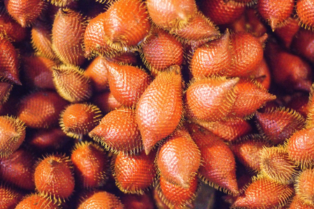 Thailand fruit, Red Fruit Salacca, Red Fresh Salacca, Salak Bali, zalacca, at the fruit market of Thailand