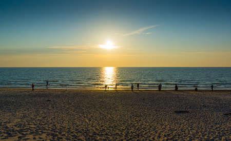 People meet sunset on Baltic Sea coast