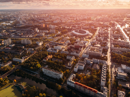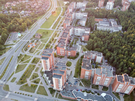 Aerial view of urban development during sunset. Obninsk, Russia