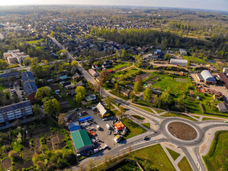 aerial view of a roundabout in the city in summer, Preili, Latvia