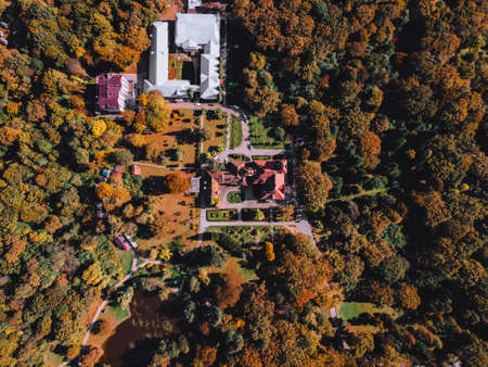 Autumn views of the Czech Republic. Aerial view of church Panny Marie.