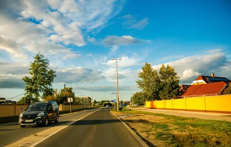 BUDAPEST, HUNGARY - SEPTEMBER 26, 2019: View from a car on the traffic of the M5 highway from Budapest to Kecskemet in Hungary on a sunny autumn afternoon.