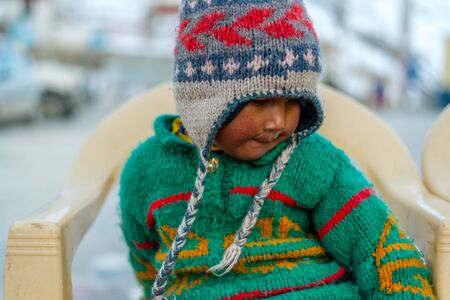 Spiti, Himachal Pradesh, India - March 24, 2019 : Photo of Tibetan kid in himalayas