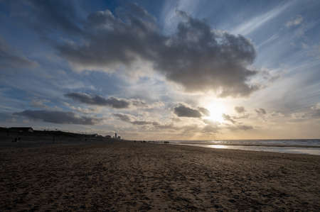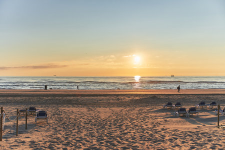 Scheveningen Beach in The Hague at sunset on a beautiful summer evening, Netherlands