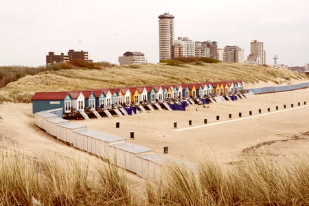 Beach huts on the North Sea coast near Bloemfontein in the Netherlands