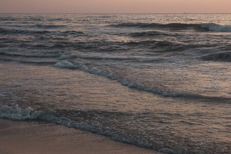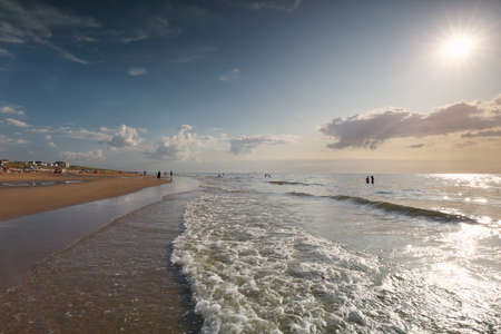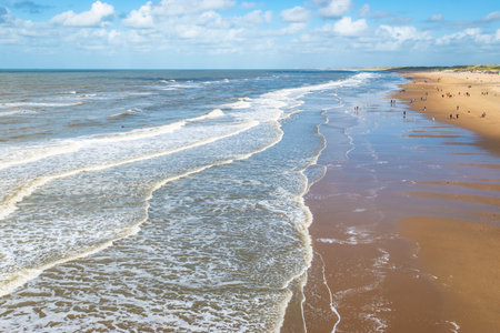Beach with waves, Scheveningen coastline, North Sea, The Netherlands.