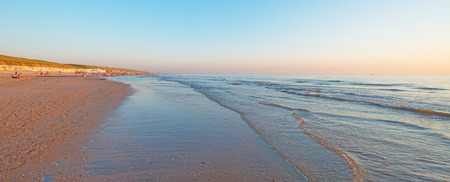 Dunes, beach and sea at the coast of Holland during a summer evening.