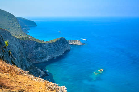 Zakynthos cliff panorama on a sunny summer day. Artistic effect applied.