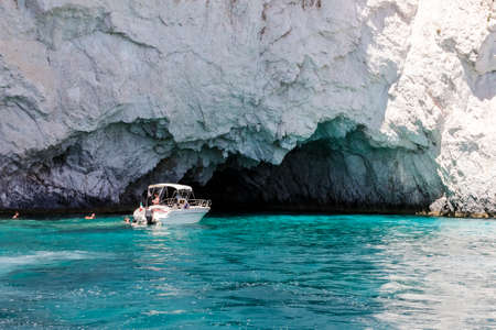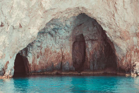 Travel and touristic concept - Blue caves on Zakynthos island, Greece
