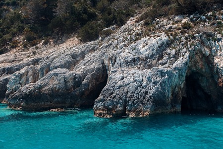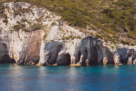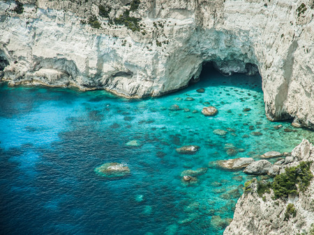 Blue sea caves on Zakynthos island, Greece, with crystal clear waters