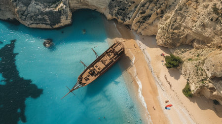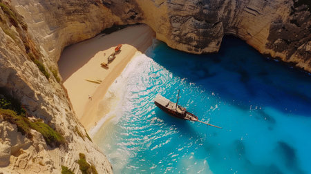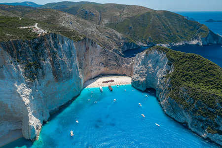 Aerial view of Navagio or Shipwreck Beach on the coast of Zakynthos, Greece