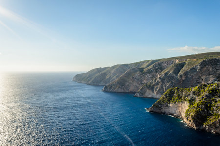Aerial view of the beautiful cliffs of Zakynthos island, Greece
