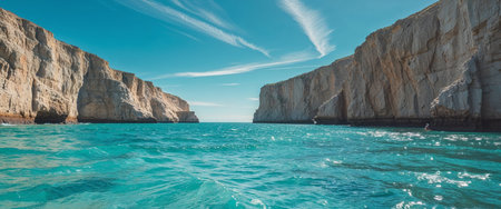 AI Generated. Coastal Cliffs and Clear Blue Water on a Sunny Summer Day