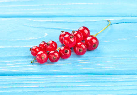 Branch fresh red currant on a blue wooden background