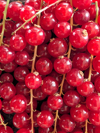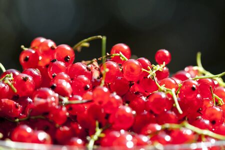 Close-up of red currant berries. Abstract food background. Macro shot.