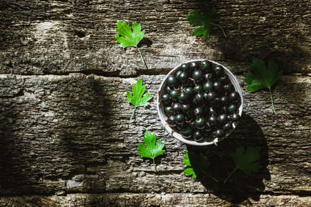 cassis berry on wooden rustic style agriculture background